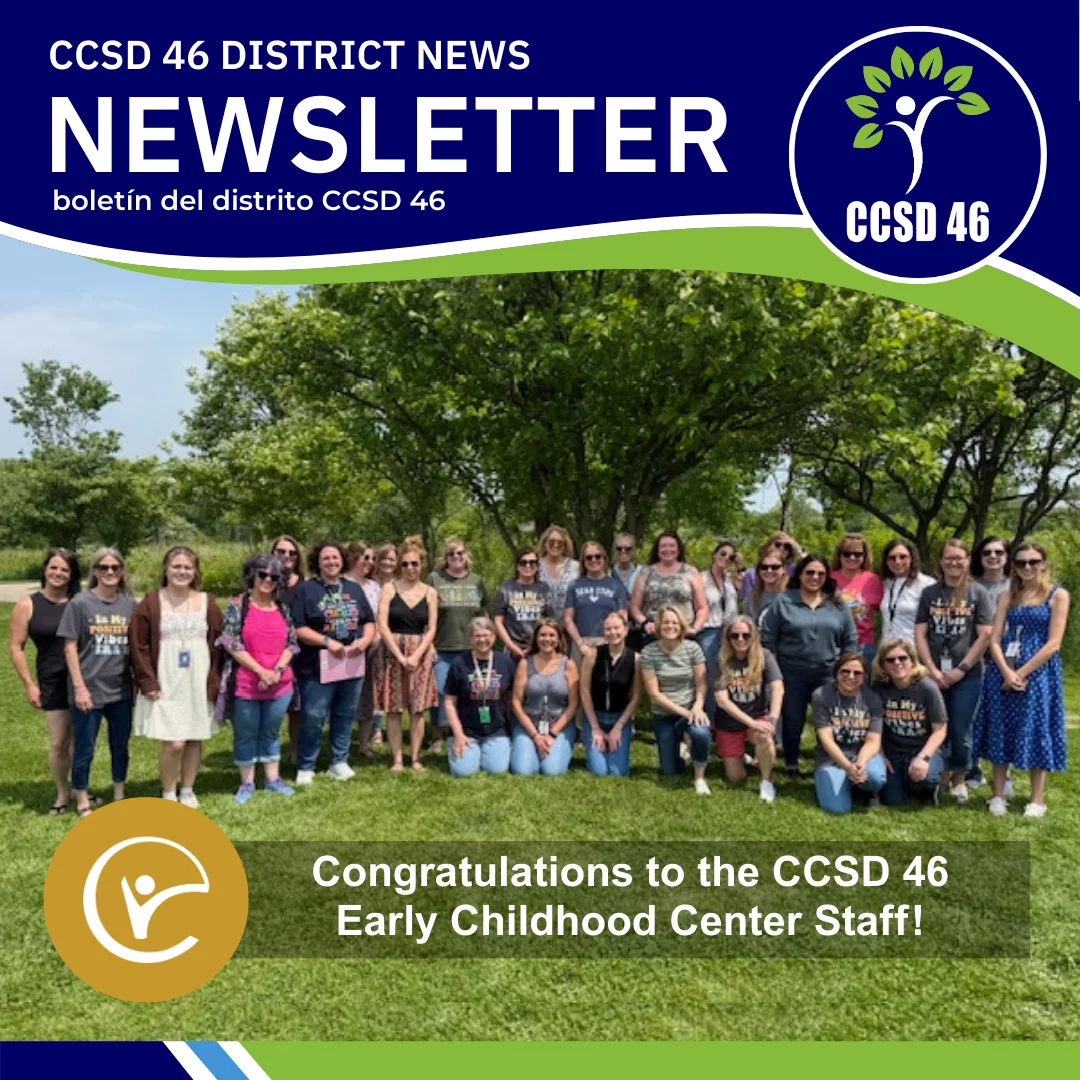 Nos complace presentarles la próxima edición de nuestro boletín electrónico del distrito CCSD 46. Las nuevas ediciones del boletín llegarán a su bandeja de entrada cada tercer Miércoles, y también se publicarán en nuestro sitio web (d46.org/news/). Estarán llenos de noticias y actualizaciones de varios departamentos, y están destinados a mantener a nuestras familias y la comunidad al día sobre lo que está sucediendo en nuestro distrito escolar.